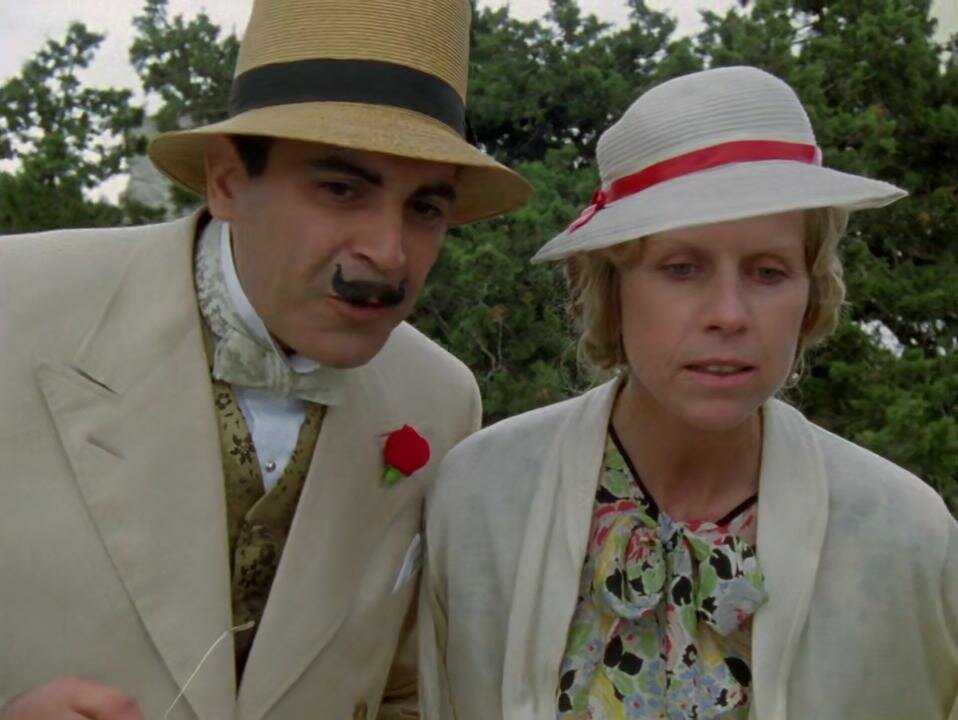 Всего о Пуаро вышло 13 экранизаций, великого сыщика в разное время играли Питер Устинов, Джон Малкович, Кеннет Брана и даже Константин Райкин. Но больше всех миру полюбился британский сериал с Дэвидом Суше в главной роли. Именно он создал эталонный образ Пуаро, максимально близкий при этом к описаниям Агаты Кристи: щеголь и денди небольшого роста, в устаревших, но дико стильных костюмах и обуви, с яйцеобразной головой и странными усами — предметом его невероятной гордости.