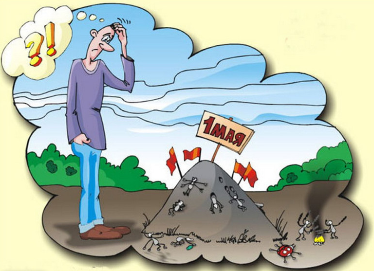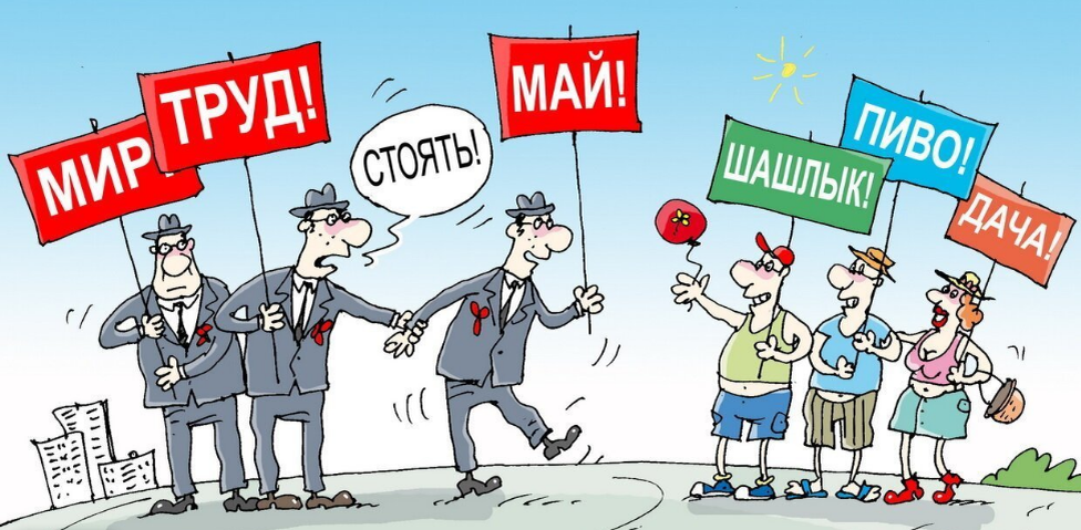 Карикатуры и анекдоты про мир, труд, май и... дачу |